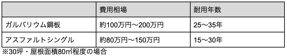 ここでは、ガルバリウム鋼板とアスファルトシングルの費用相場を比較してみました。