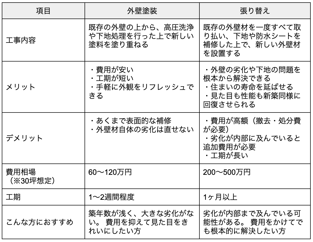 基本の2択「外壁塗装」と「張り替え」を比較