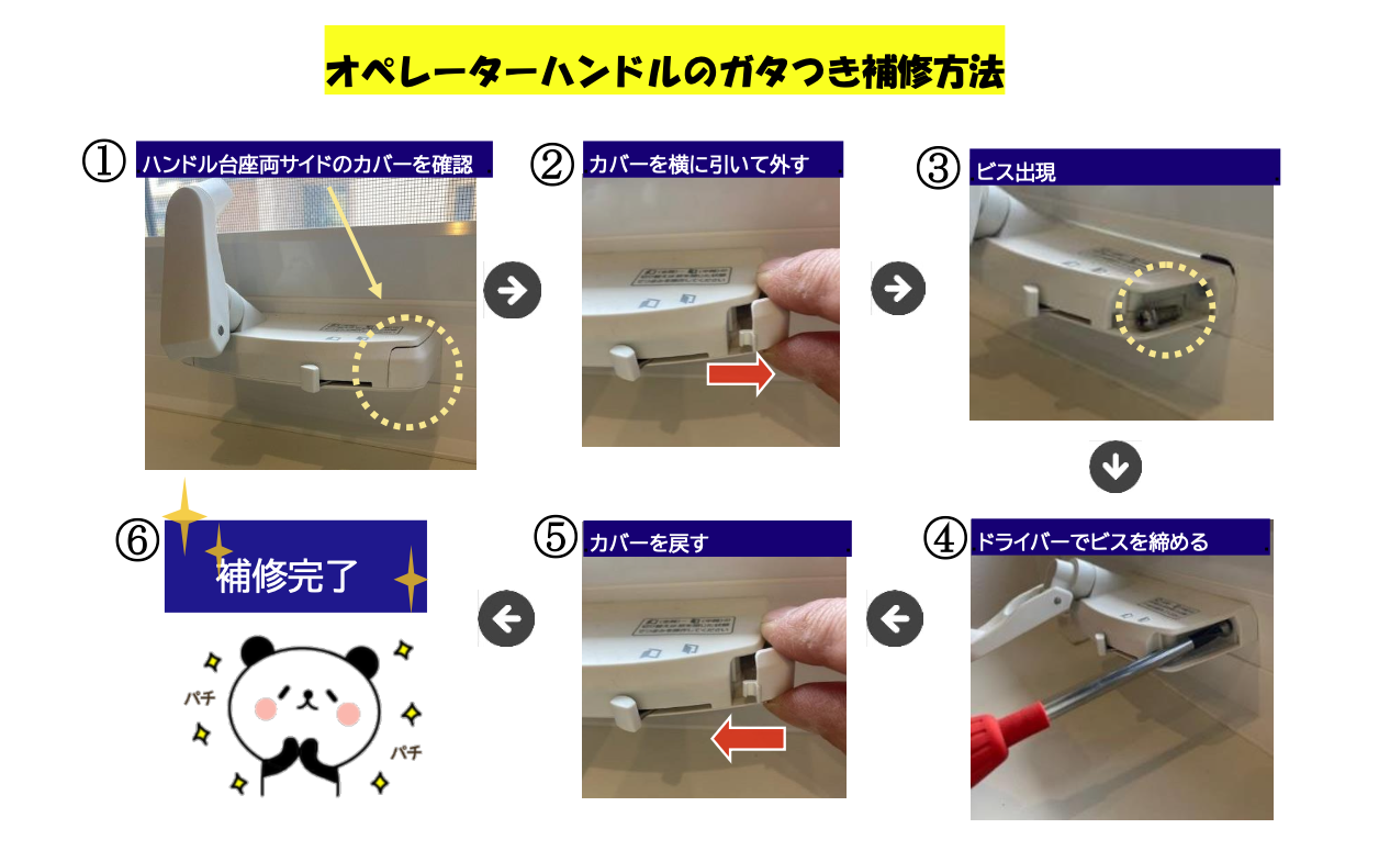 オペレーターハンドルのガタつき補修方法をわかりやすくまとめました。