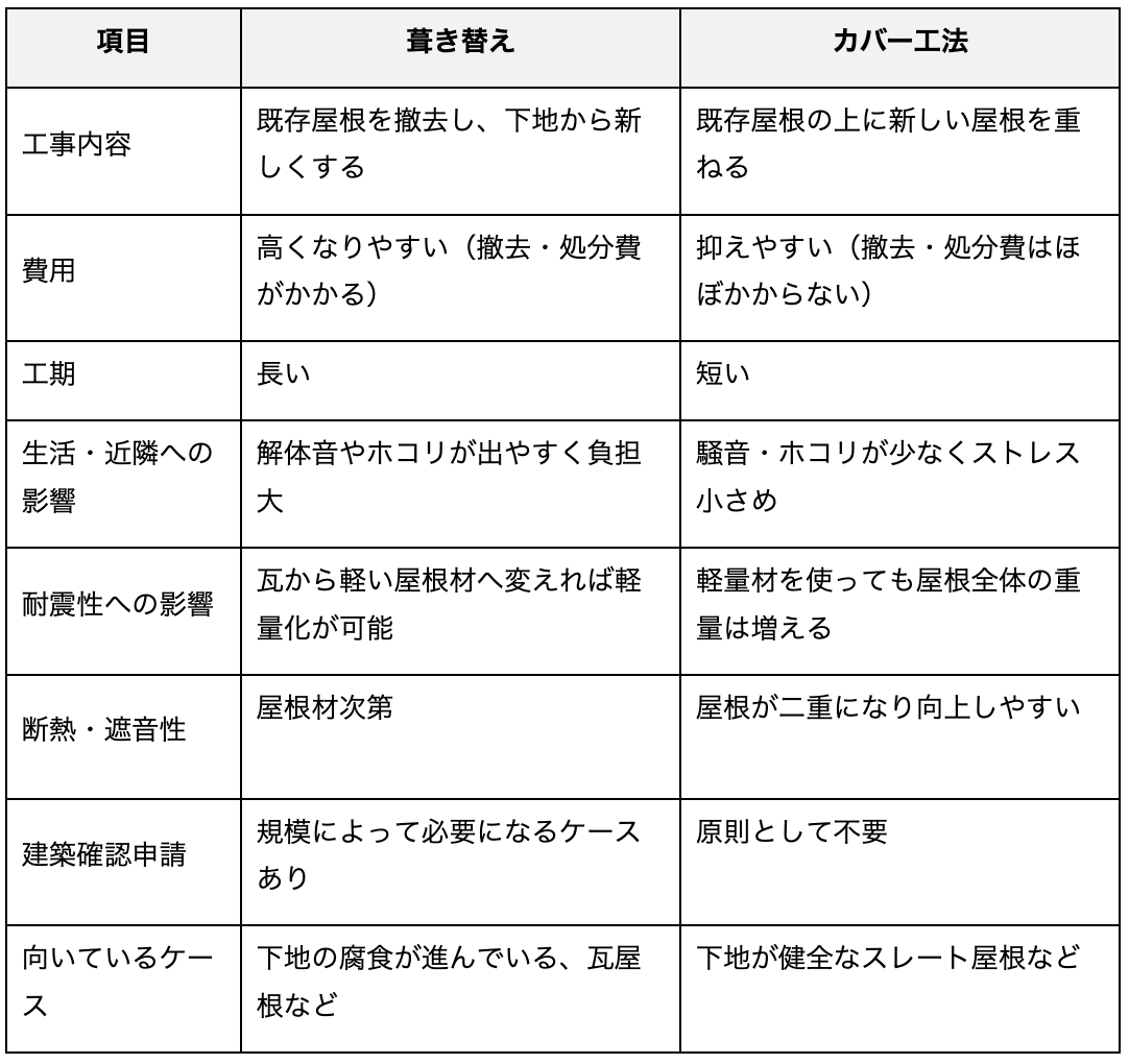 葺き替えとカバー工法の比較